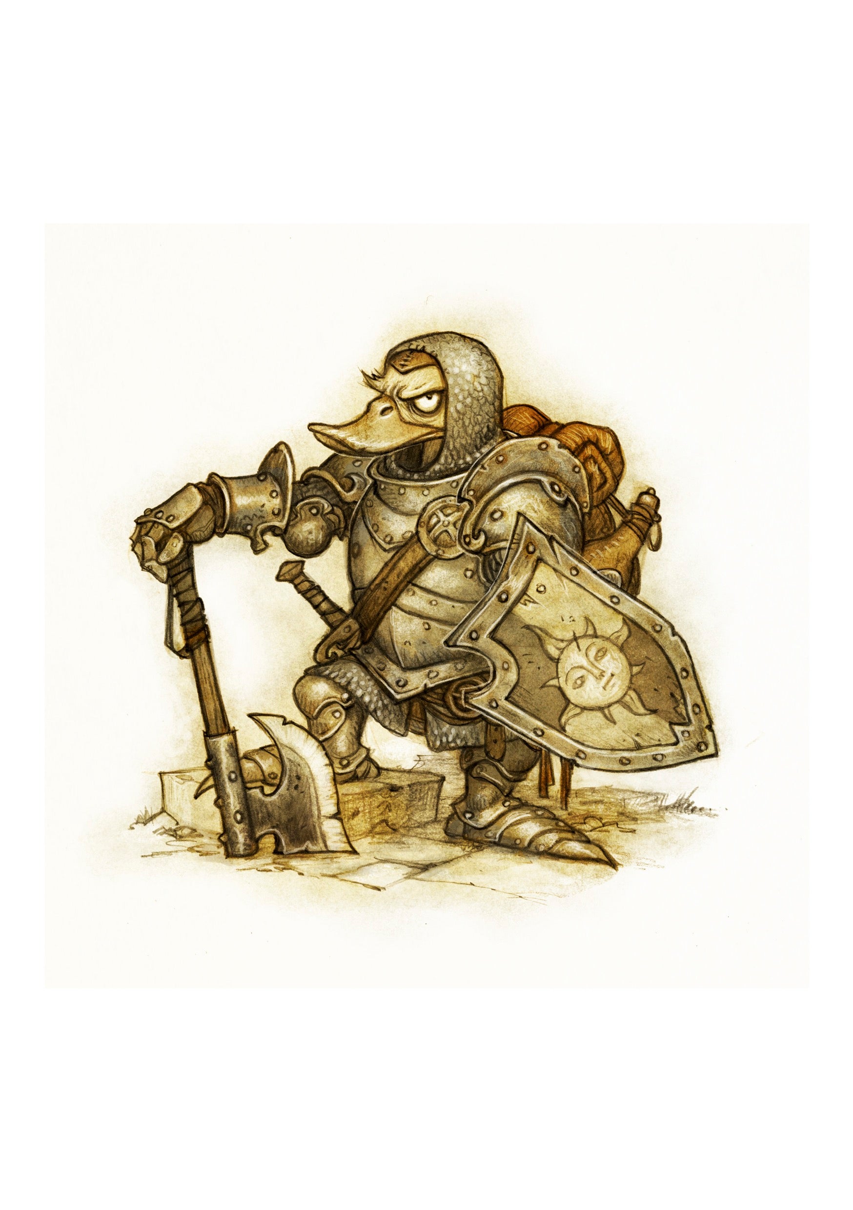 Finally we are able to offer a (limited) number of signed copies of the game in the webshop. The pre-order will be sent out in a couple of weeks. Each signed book is accompanied by an exclusive signed A5 print, depicting the mighty warrior duck.