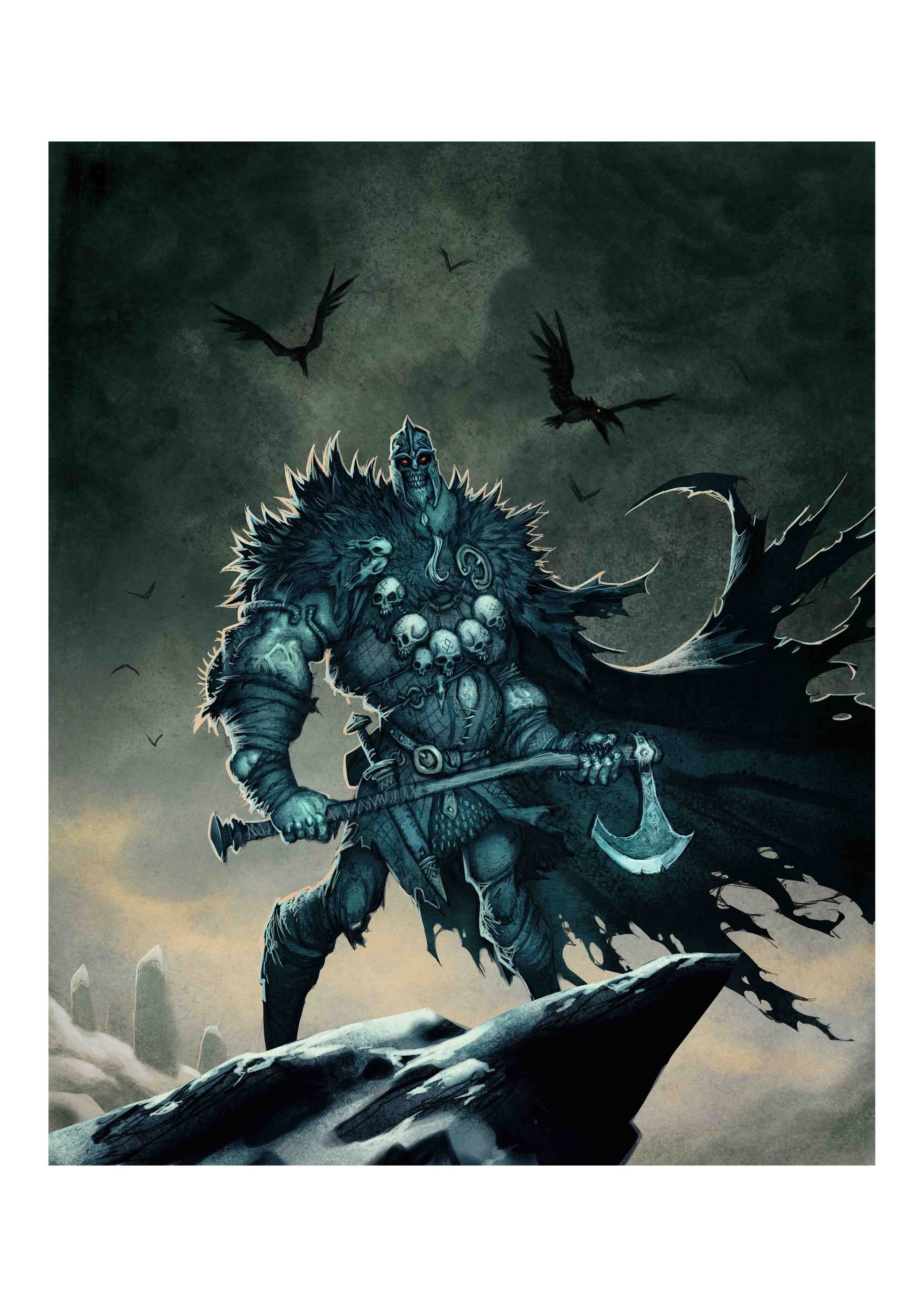 A draug is a powerful and bloodthirsty revenant from ancient Scandinavian mythology. Unlike many deathly beings, which lack an actual physical form, the draug is a decidedly substantial ghoul whose dead body is animated by their own spirit. The draug dwells in the grave mound where it was once buried and appears as a blackened, swollen corpse with sinister glowing eyes.