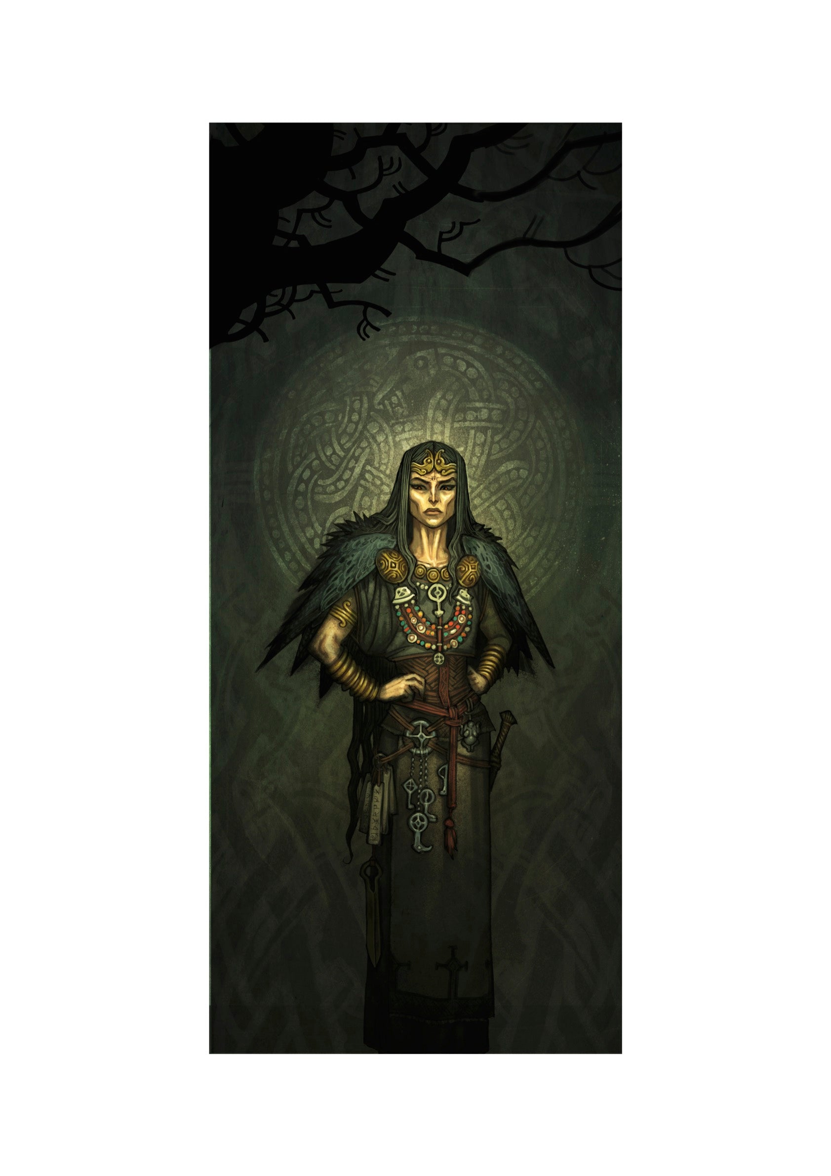 Her hall is called Fensalir, where she sometimes sits with her spinning wheel, making new clouds. In her capacity as queen of the gods she is one of the few who may sit in Odin’s high seat of Hlidskjalf. Together with Odin she has the sons Balder and Hod. Frigg is a protective mother and loves Balder above all else.