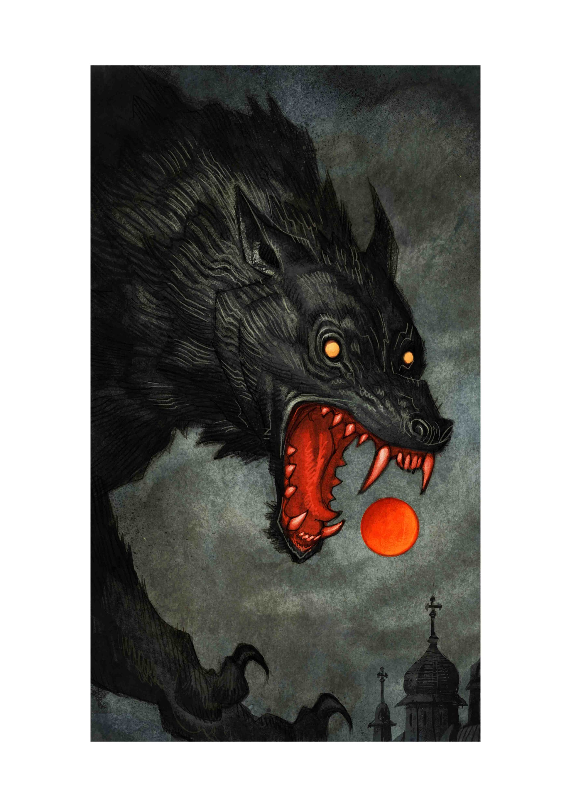 Vârcolaci (singular vârcolac) are remarkable beasts believed to combine aspects of both vampires and werewolves. Like Sköll and Hati in Nordic mythology, they are wolf monsters that cause lunar eclipses by leaping into the sky and devouring the moon. Sometimes they can even attack the sun. They appear as wolves or dogs, often in pairs. A vârcolac might also take on human form, but can be recognised by its pale skin, which is as dry as tinder.